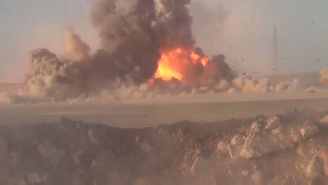 Footage from the ground shows Russian Jets bombing ISIS positions in Syria.