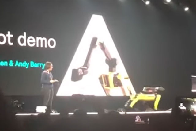 No, it isn't playing dead. Boston Dynamics' robo-dog Spot experiences a technical failure at Amazon's Re:Mars conference.