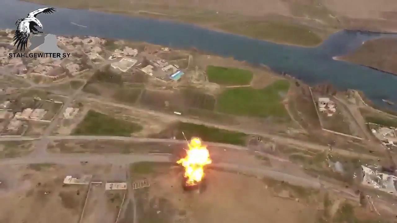 Iraqi Army Aviation footage of ISIS terrorist planting an IED and having it blow up in his face in Badush