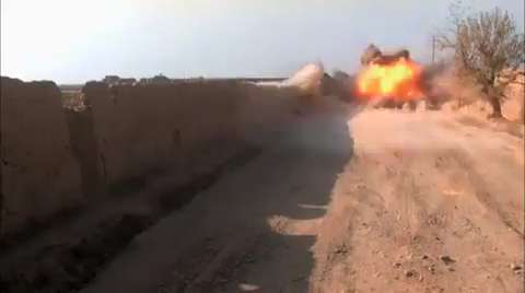 Attack occurs shortly after the 1 minute mark. The Free Syrian Army (Syrian rebels) attack a Syrian Army T-72 tank