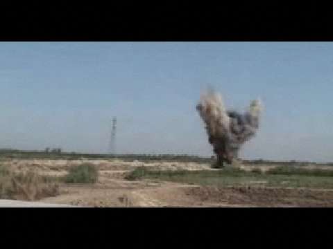 A insurgent shaped charge IED (with penetrator) tries to take out a Humvee.