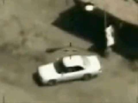 A Predator UAV observes an insurgent planting IEDs on a road and engages the individual's vehicle as he attempts to