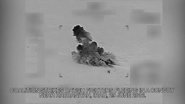 Coalition strikes Da’esh fighters fleeing in a convoy near Habbaniyah, Iraq. The strikes were conducted as part of Operation Inherent