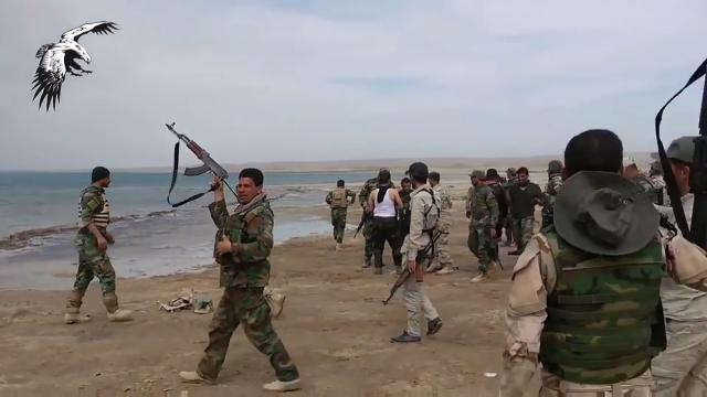 Celebratory gunfire after Iraqi popular mobilization forces reach the banks of Lake Tharthar during the offensive against ISIS west of