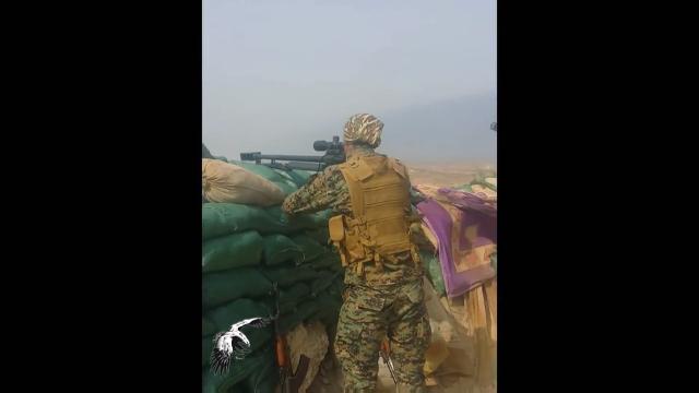 An Iraqi popular mobilization sniper searches for ISIS targets with his Iranian copy of a Steyr HS .50 anti materiel
