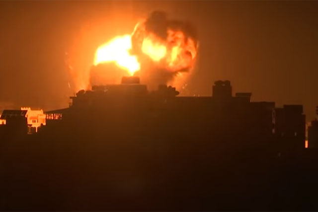 The moment a projectile hit Syrian positions and exploded during an air raid.