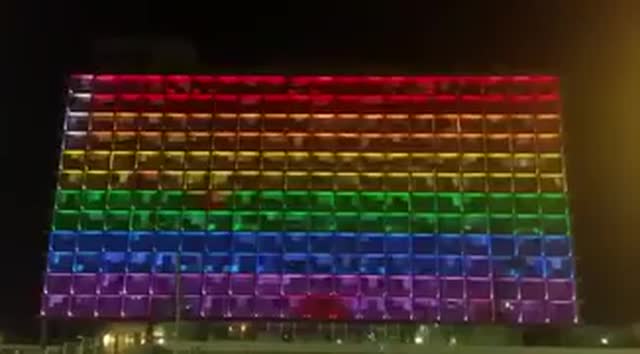 In solidarity with the victims of the Orlando shooting, Tel Aviv city hall lights up in U.S. & Rainbow colors.
