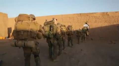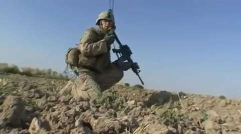 B-roll of Company B,1st Reconnaissance Battalion Marines suppressing enemy forces by fire and maneuver during a mission extract near Sangin