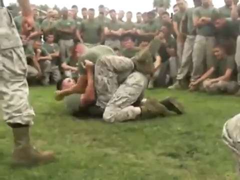 Marines fire an 80mm mortar bipod and it collapses before sending the round downrange.