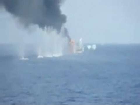 Russian Marines Destroy Somali Pirate Ship - Shooting from the Russian military ship "MarshalShaposhnikov".