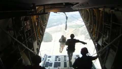 Marines with Landing Support Company, Combat Logistics Regiment 27, 2nd Marine Logistics Group conduct parachute training.