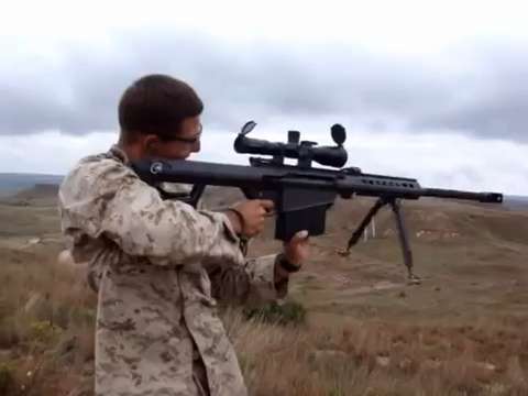 A Marine decides to shoot a Barrett M107 .50 cal sniper rifle from the standing position.