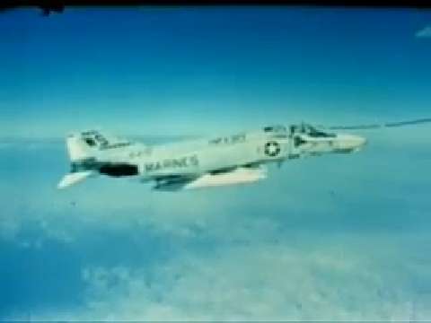 A KC-130 Hercules refuels Marine Corps F-4 Phantoms over Vietnam.