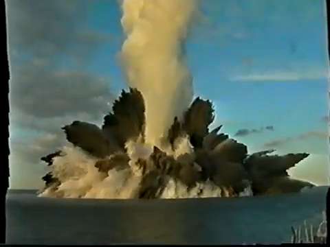"A ship from another Navy (I think its French) is clearing old mines. They detonate a mine that was atop