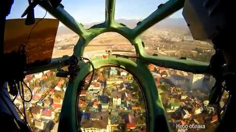 Great view of a Tu-134 flight and landing at Sochi airport in Russia viewed from the nose. The Tupolev Tu-134