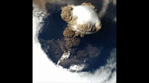 Crew aboard the International Space Station captured this image of the Sarychev Volcano as it erupted on June 12, 2009