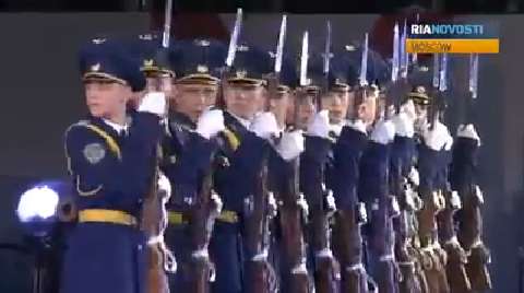 Chinese monks showed their traditional fighting skills, and a Scottish band performed folk bagpipe tunes at the the Spasskaya Tower