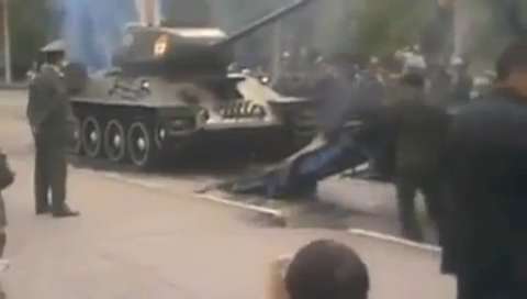 Russian military engages terrorists with heavy fire. Includes aftermath at the end.
