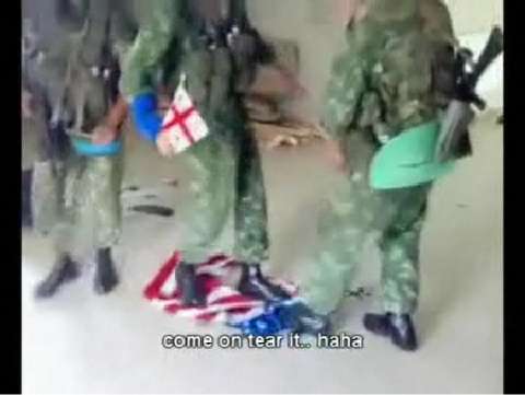 Russian Army members trample US flag. Is this for real? These had better be pranksters trying to get a stir.