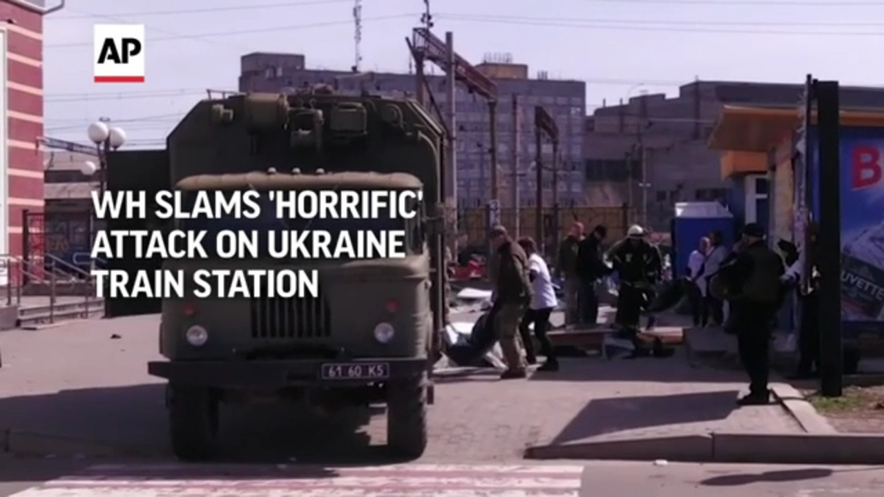 President Joe Biden's chief spokesperson on Friday called the Russian missile attack on a train station in eastern Ukraine "another