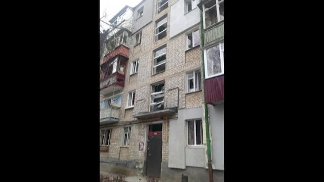 A residential area in the Ukrainian city of Kharkiv lay in ruins after a building was struck on Tuesday. (Marina