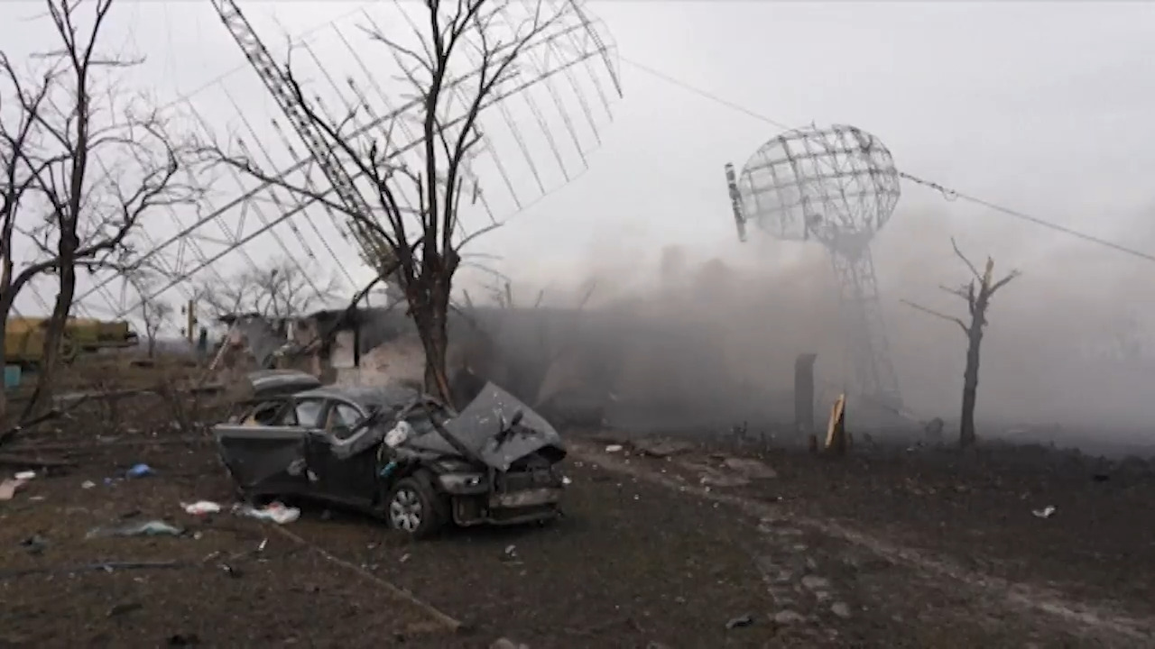 Radar arrays, vehicles and other equipment were seen burning on Thursday at a Ukrainian military facility outside the eastern city