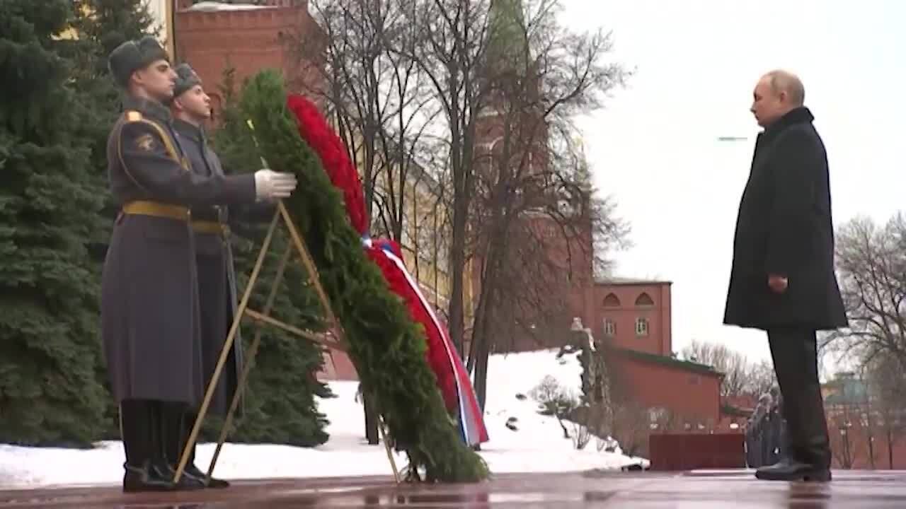 Russian President Vladimir Putin laid wreaths at the Tomb of the Unknown Soldier in Moscow on Wednesday, the Defender of