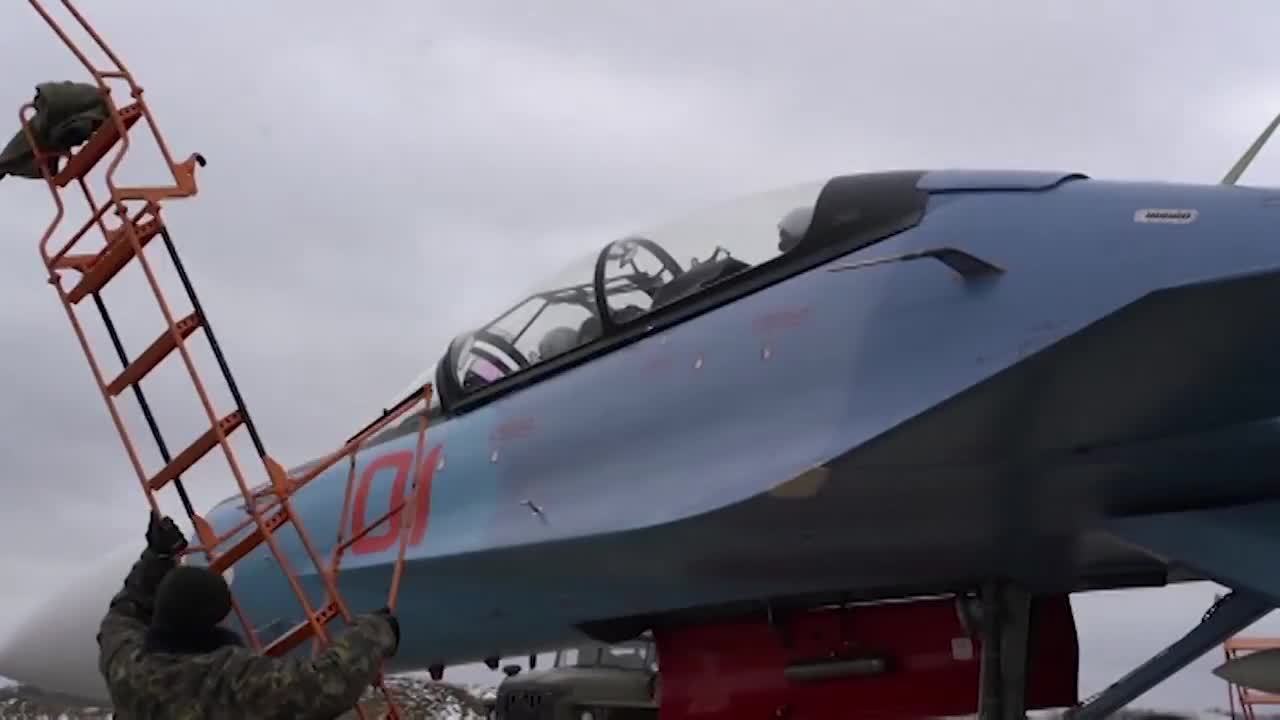 Russia's Defence Ministry released on Monday footage showing Russian and Belarusian fighters patrolling the Belarusian aerial border as part of