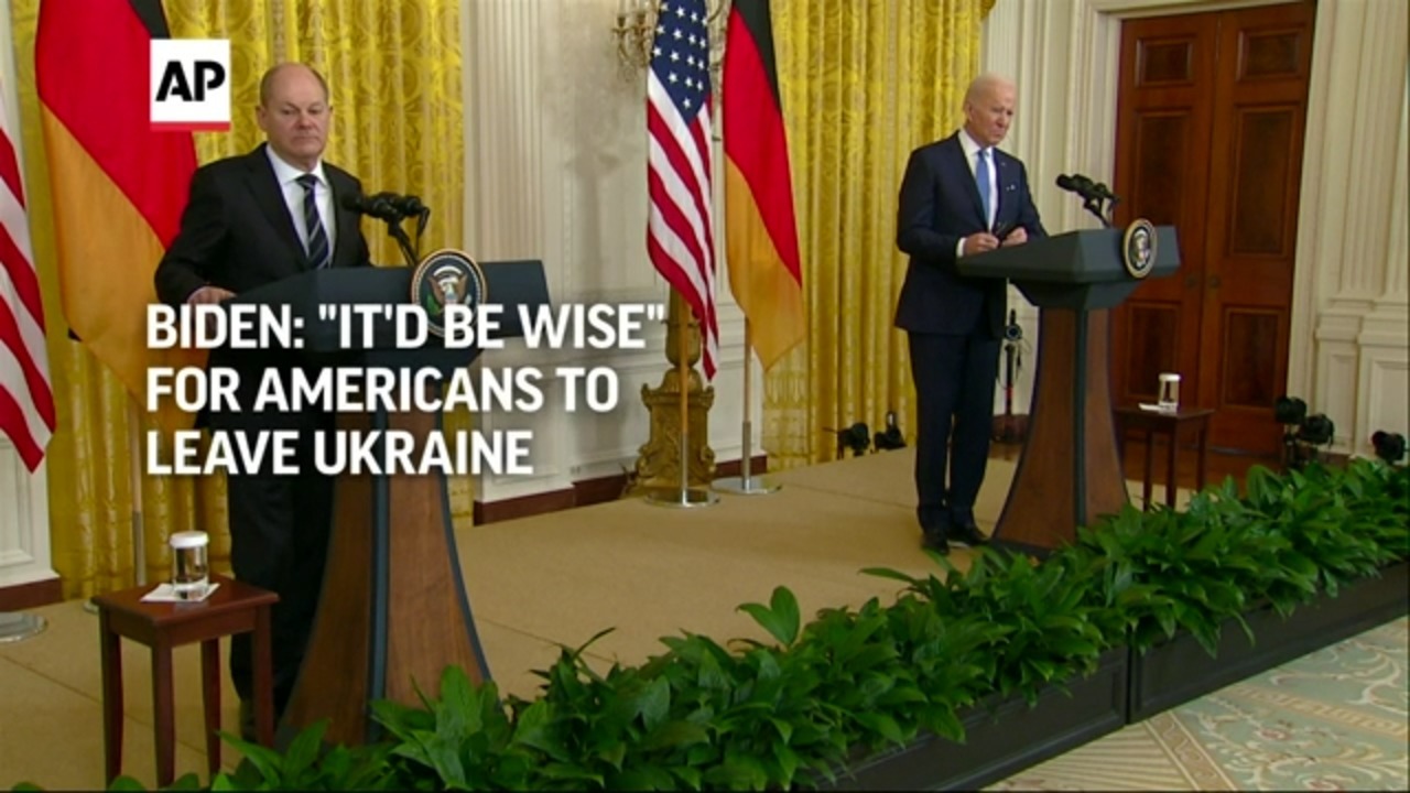 President Joe Biden said Monday "it'd be wise" for Americans other than essential diplomats to leave Ukraine amid the Russian