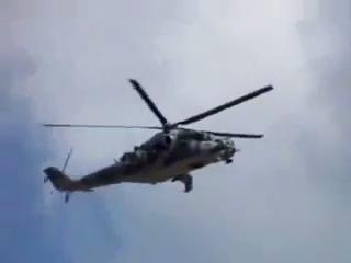 A Russian Attack Helicopter Rotor appears to be frozen stuck while the helicopter is flying in the air thanks to
