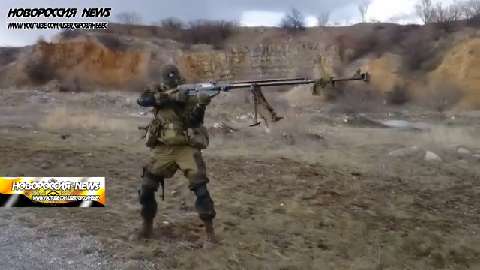 Russian terminator from the Donbass trains using an anti-tank rifle to shoot on the move!