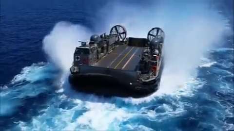 A U.S. Navy Landing Craft Air Cushion (LCAC) launches and embarks aboard the amphibious assault ship USS Boxer (LHD 4).