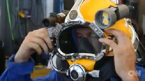 Reminiscent of intrepid divers in Jules Verne's 1870 classic "Twenty Thousand Leagues Under the Sea," the divers wear large helmets