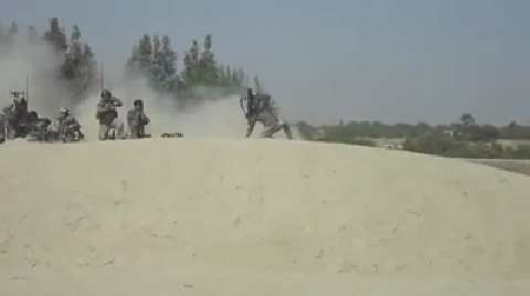 B-roll of Company B,1st Reconnaissance Battalion Marines suppressing enemy forces by fire and maneuver during a mission extract near Sangin