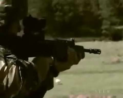 Standard issue rifle for British forces, caliber 5.56 NATO. Explained by 'Andy McNab', former SAS soldier and author.