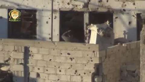 Islamic Front militants battle Syrian regime forces in Aleppo. The sniper is allegedly firing a 23mm explosive projectile, almost making