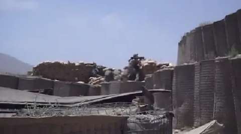 A soldier fires off a 82mm Carl Gustav during a firefight against the Taliban in Wardak, Afghanistan. Footage from the