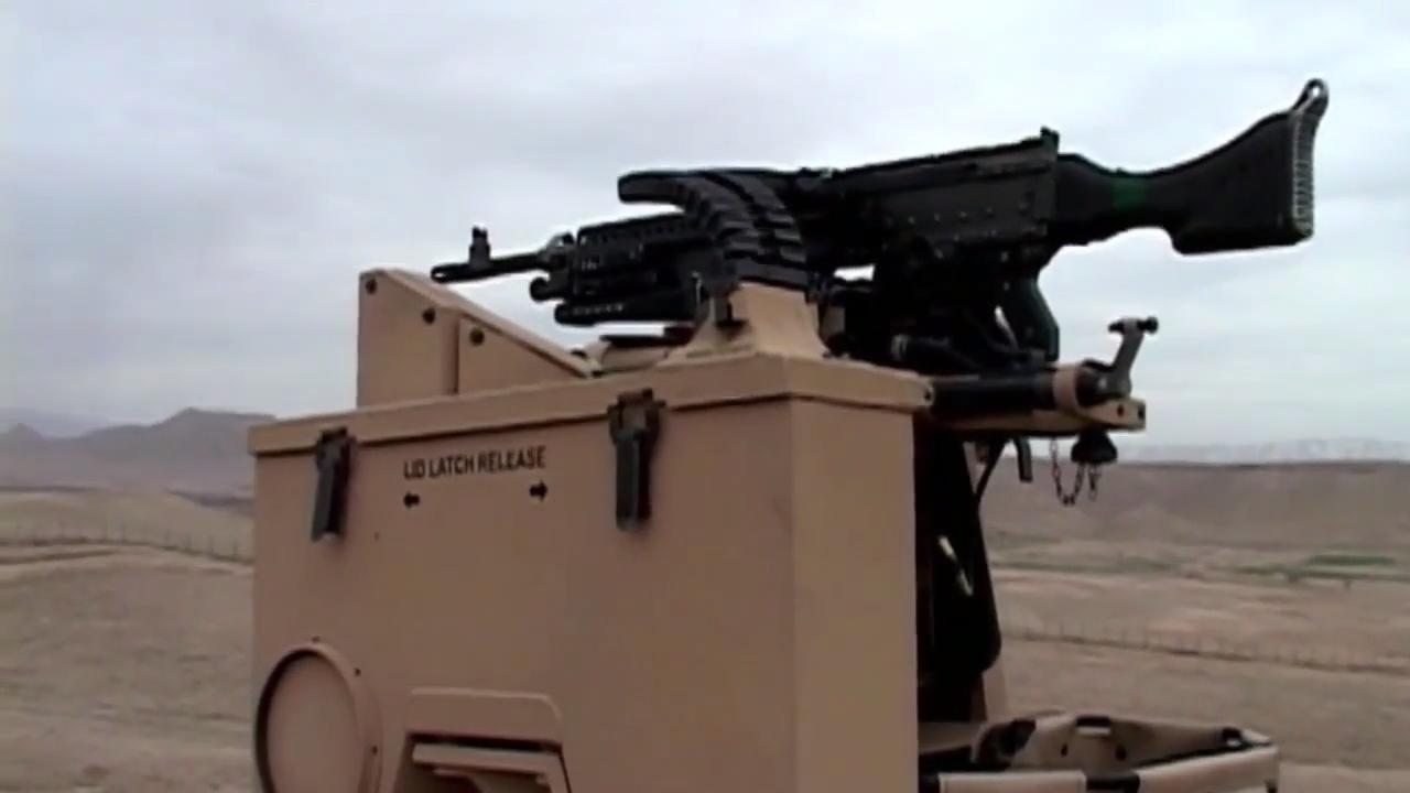 U.S. Army personnel train with the Common Remotely Operated Weapon Station (CROWS) machine gun system.