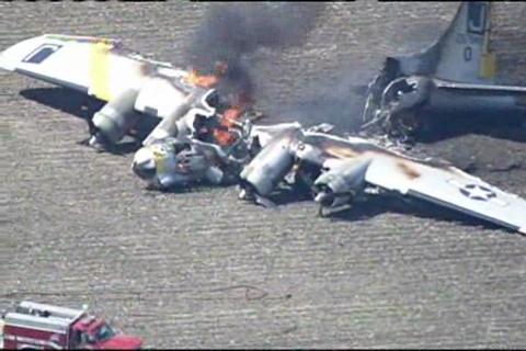 All seven people on-board escaped injury after a Second World War era B-17 bomber burst into flames after crashing in
